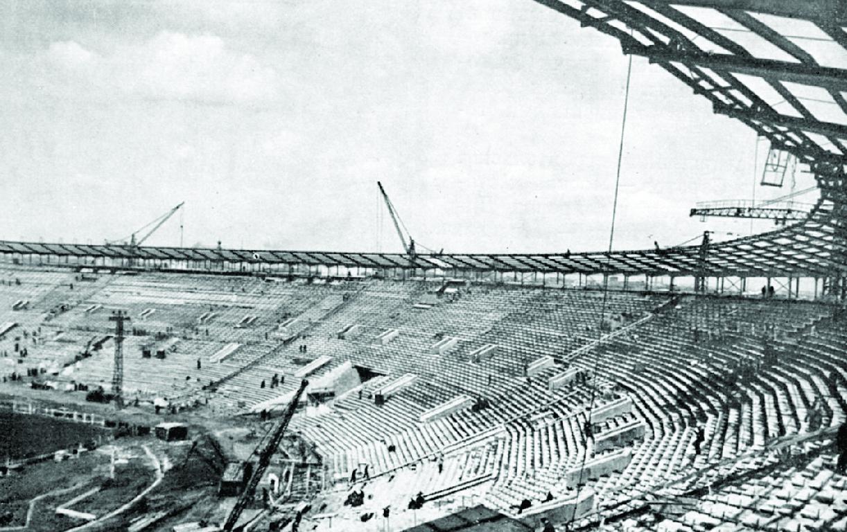 Зал перекрывался галереей шириной 30 метров. Это были две концентрические окружности несущих конструкций: одна диаметром 140, вторая — 160 метров. На каждом кольце размещалось по 32 опоры, которые принимали на себя всю основную нагрузку от здания. Здание было очень тяжелым: стальной каркас, монолитные пилоны, все обработано гранитом — тяжелым, долговечным. Сооружение возводилось на века, все конструкции рассчитывались с огромным запасом прочности. Для каркаса была создана специальная сталь с легирующими добавками7, она называлась «сталь ДС». Тогда ни у кого в мире такого металла не было. К надежности и долговечности конструкций требования выдвигались жесткие. Для решения всех этих вопросов был создан Технический совет, куда входили крупнейшие ученые в области строительного искусства того времени. Действовал еще Совет строительства, который возглавлял Молотов. Все, что требовалось, решалось непосредственно на самом верху, в Совнаркоме, минуя наркоматы. На это здание привлекли широкий круг специалистов — строителей, архитекторов, акустиков, технологов, механиков, потому что там планировался механический гардероб, лифты, эскалаторы и все прочее. То есть здание решалось в самом современном духе. В результате, когда все это скомпоновалось, объем вылился, грубо говоря, в семь с лишним миллионов кубических метров. Для примера: объем высотного корпуса Московского университета на Ленинских горах — примерно миллион четыреста тысяч кубометров.