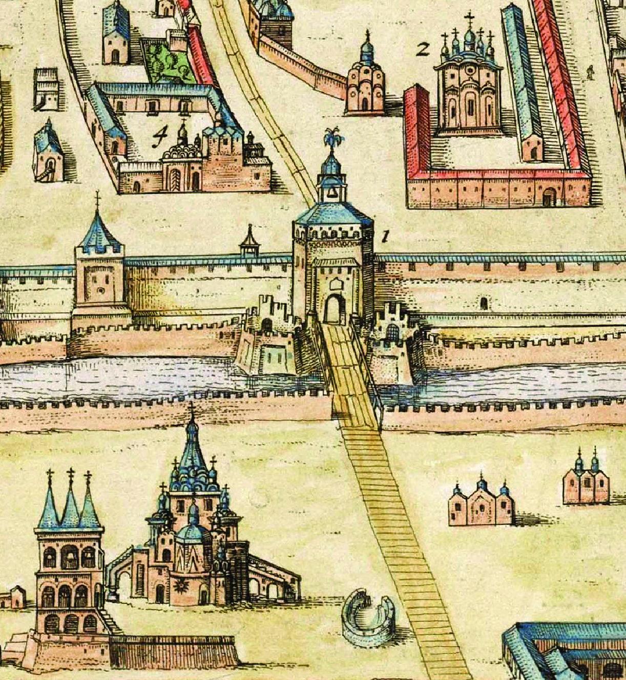 Спасская башня Московского Кремля на чертеже «Кремленаград». 1613 год